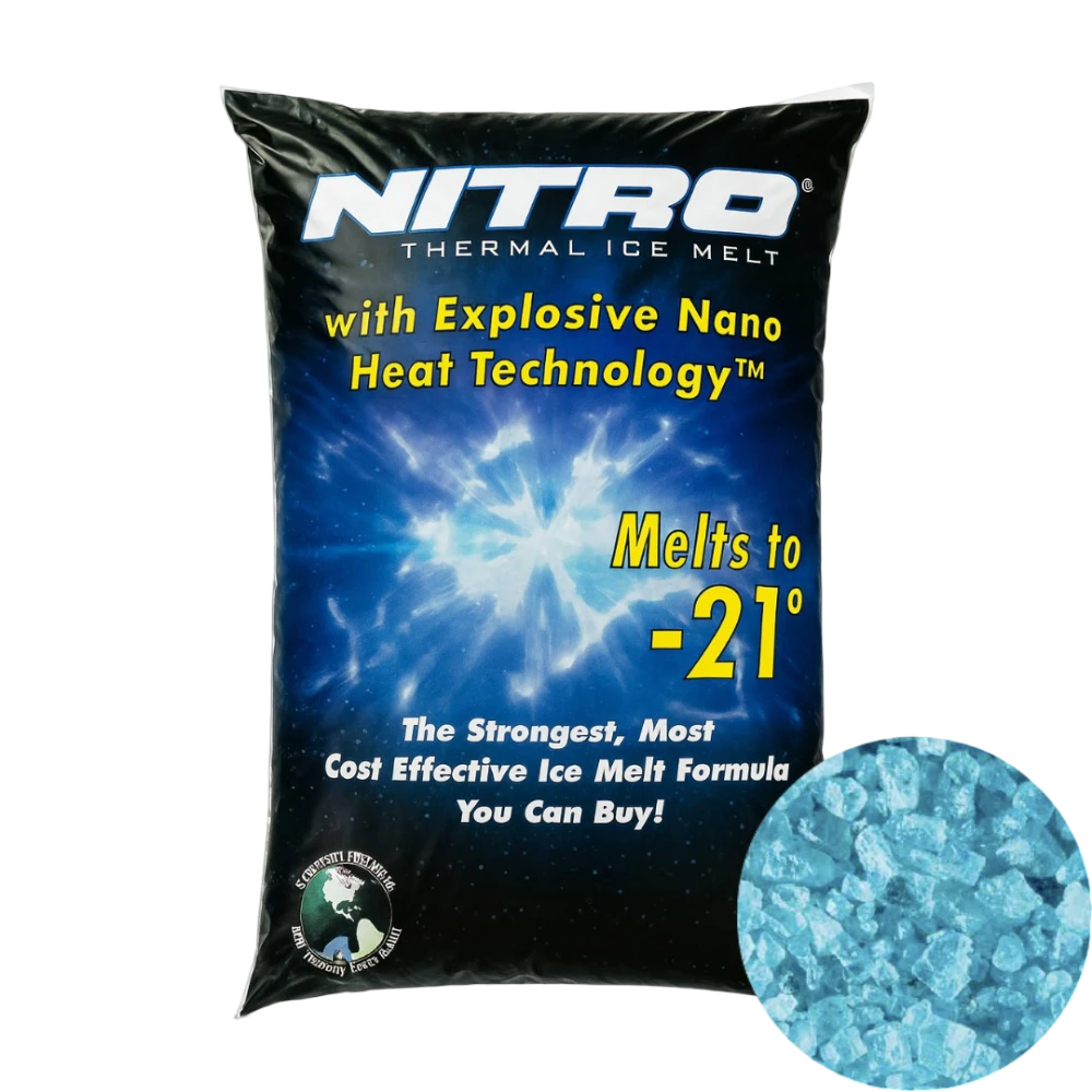 Nitro™ Thermal Ice Melt delivers fast-acting, long-lasting de-icing power with Explosive Nano Heat Technology™. It activates on contact to break the bond between ice and the surface, melting effectively even in extreme cold (down to -21°). Its non-clumping granules spread easily, add traction, reducing reapplications and lowering your cost per storm. Safe for concrete, landscaping, pets, and the environment.